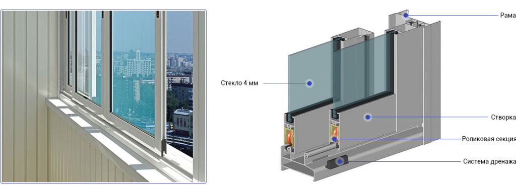Преимущество такого остекления является экономия свободного пространства с максимальным доступом естественного света. Выглядит такое остекление очень презентабельно и придает интерьеру элегантности.