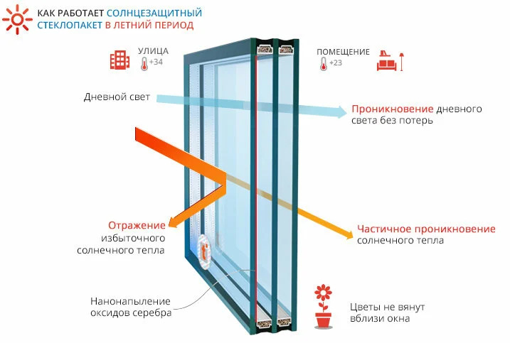 Для сохранения тепла в стеклопакет устанавливаются мультифункциональные энергосберегающие стекла, камеры заполняются инертным газом – аргоном.