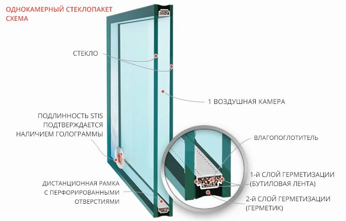 На примере однокамерного стеклопакета (2 стекла)