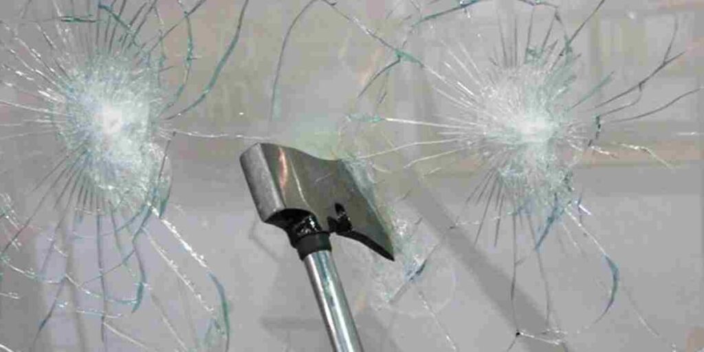 Ударостойкое стекло безопасно, при его разрушении осколки не разлетаются, а остаются на пленке. Это стекло может защитить имущество: при агрессивном механическом воздействии, например, острым металлическим предметом, первое щелевое отверстие появляется только спустя 15 минут.