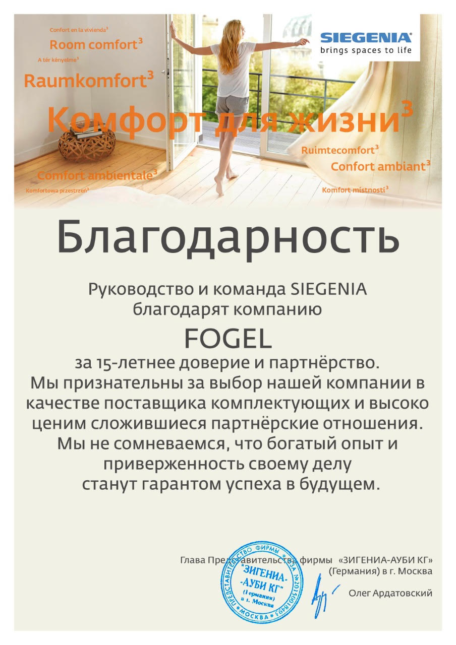В 1997 году появился небольшой цех. Было выпущено первое окно, заложен прочный фундамент производства. Способность руководства преодолевать сложности, желание и умение сотрудников работать позволили фирме «Фогель» занять лидирующие позиции рынка производства и установки пластиковых окон. Стабильные, надежные и устойчивые даже в кризисные времена.