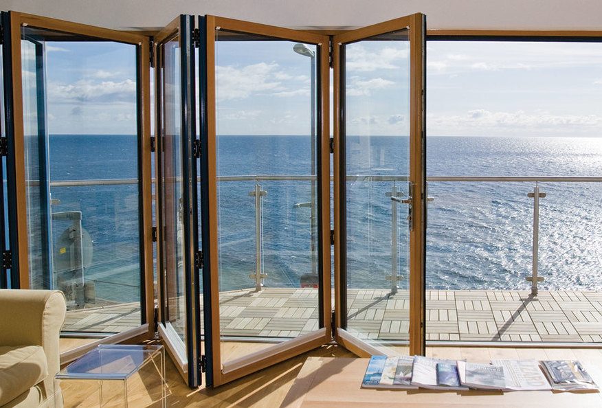 В загородных домах и коттеджах популярны и функциональны FS-порталы «Гармошка». Это раздвижные конструкции складного типа из ПВХ или алюминия. Створки портала сдвигаются в сторону и складываются под углом 95°, как гармошка. Открывание возможно как внутрь, так и наружу, полностью или на проветривание. Также можно полностью сложить и оставить большой проем.